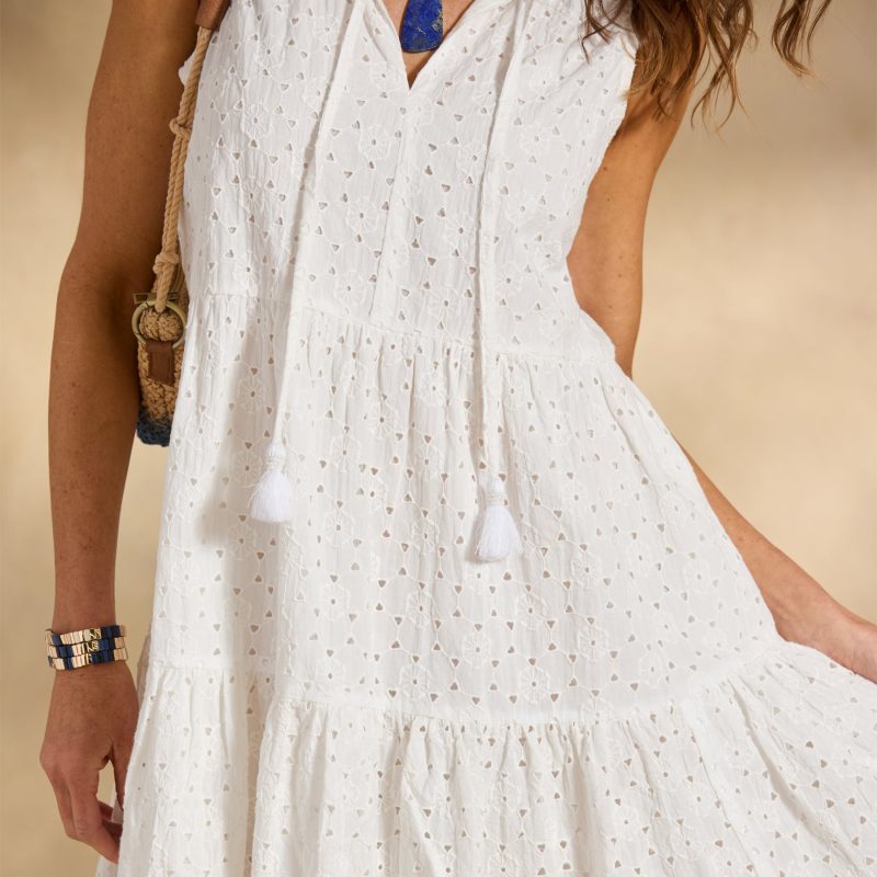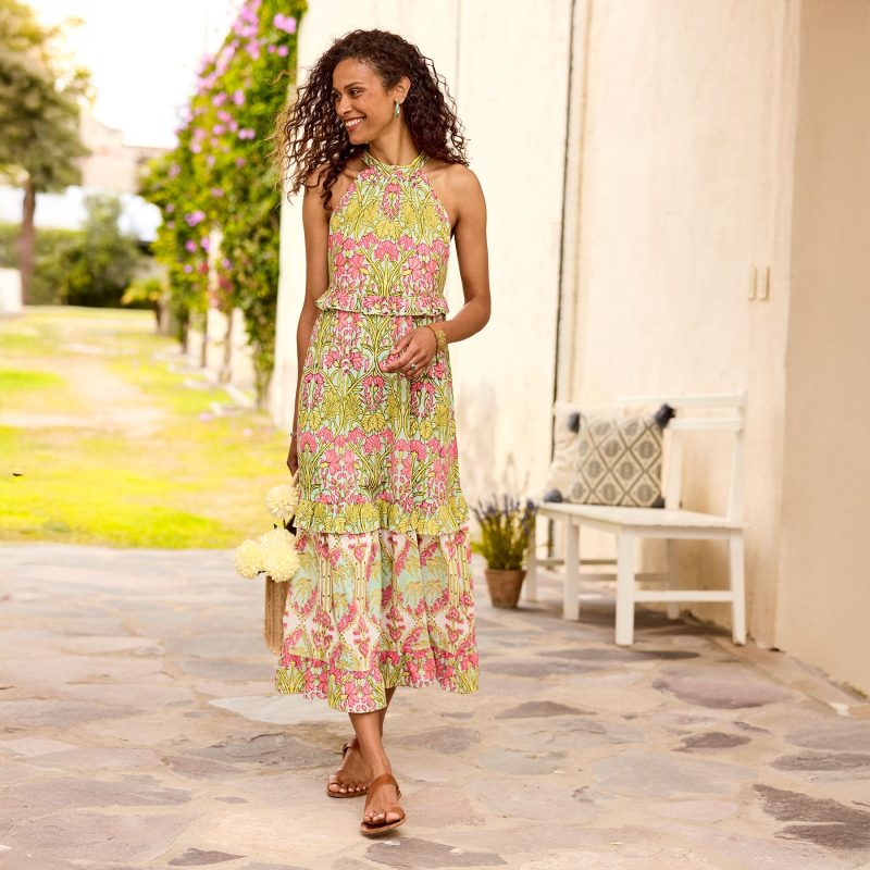 Feel your best in this flattering V-neck dress with contrast print details. Zipper back. Polyester. Hand wash. Imported. Sizes XS (0?C2). S (4?C6). M (8?C10). L (12?C14). XL (16?C18). Approx. 47.37l.