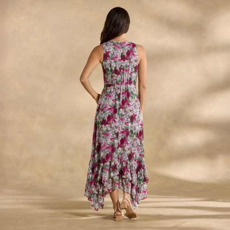 Equal parts outgoing and demure. our Champs de Fleur Printed Dress cultivates charm at every turn—with a flattering surplice neckline. subtle smocking and an ultra-femme asymmetrical ruffled hem. Back zipper with elastic for comfort; fully lined. Viscose/rayon. Machine wash. Imported. Exclusive.