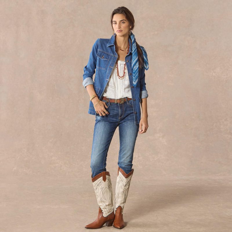 Classic denim detailing in a safari-inspired style gives our fun jacket a vintage vibe. Fitted. with four pockets. self tie and antiqued copper button front. Cotton. Machine wash. Imported. Exclusive. Sizes XS (0?C2). S (4?C6). M (8?C10). L (12?C14). XL (16?C18). XXL (20?C22). Approx. 27.5l.