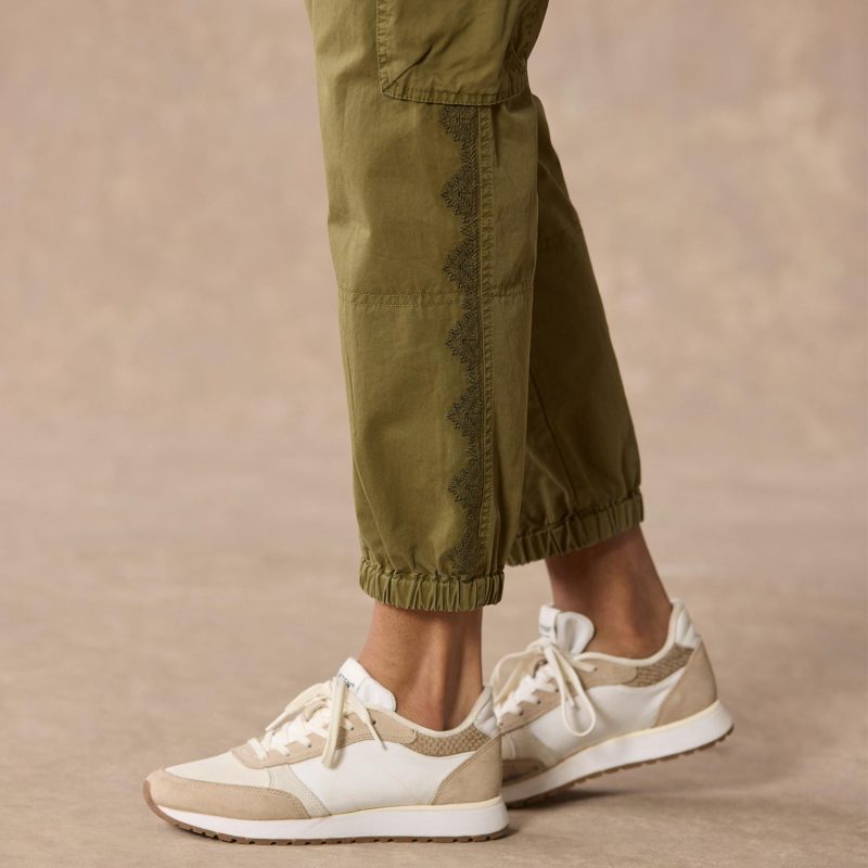 Surplus joggers with an easy cargo fit. Bellow cargo pockets. drawstring waistband. elastic cuffs and pretty tonal embroidery down the legs. Zip and button fly. Cotton. Machine wash. Imported. Exclusive. Sizes 2–16. 28 inseam.