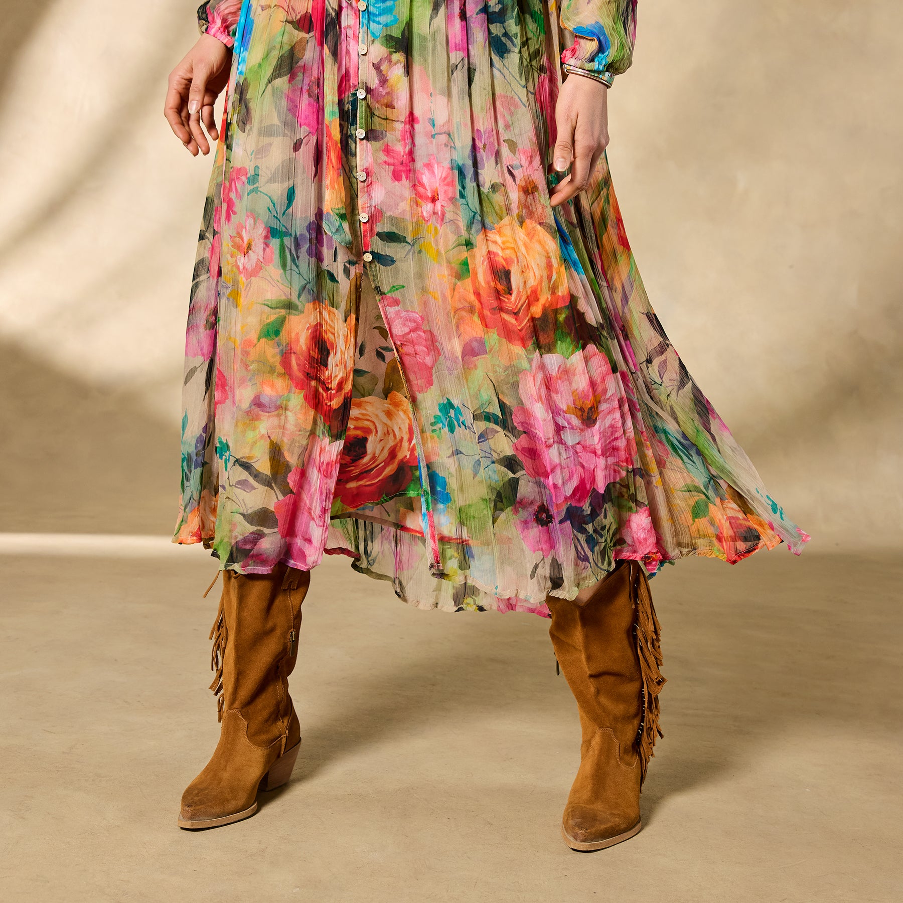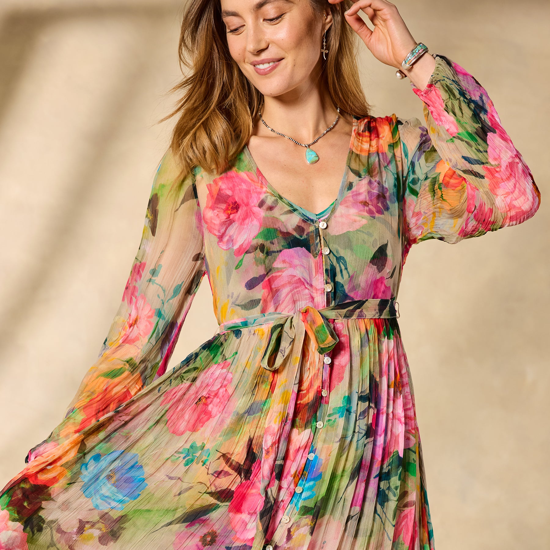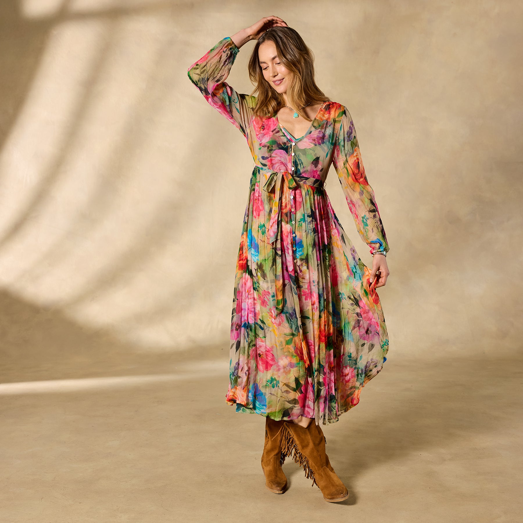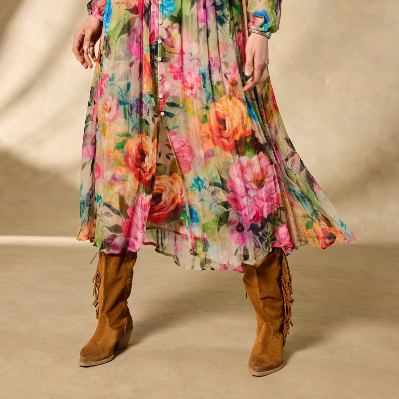 Be a heavenly vision wherever you go in our floaty Halcyon maxi. A vibrant exploded floral pattern further elevates an already stunning jacquard fabric; with shell buttons. elastic cuffs. removable belt and separate printed slip. Viscose. Machine wash. Imported. Exclusive. Sizes XXS (00). XS (0?C2). S (4?C6). M (8?C10). L (12?C14). XL (16?C18). Approx. 49l.