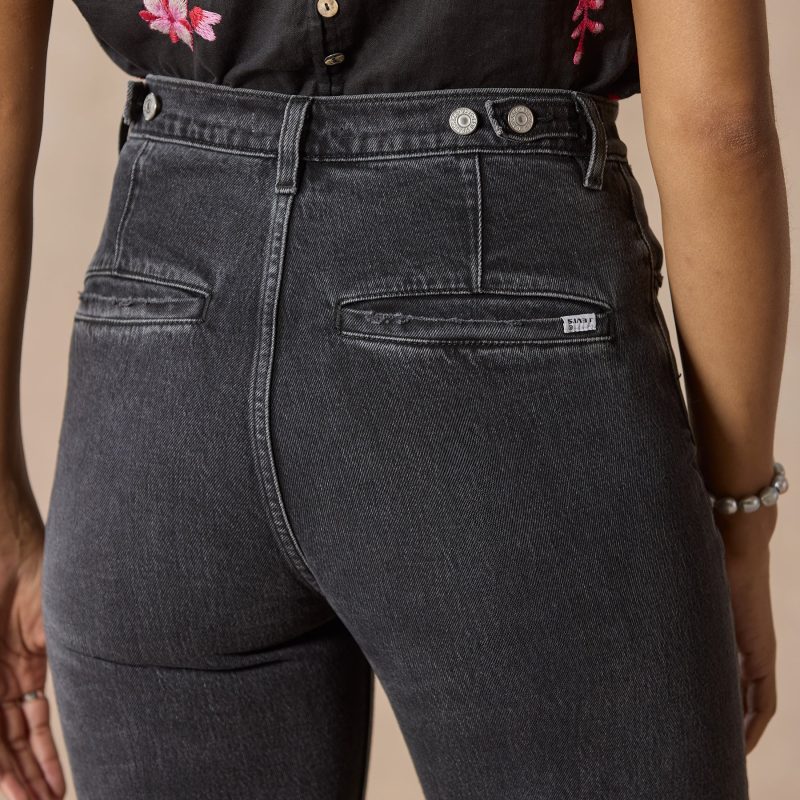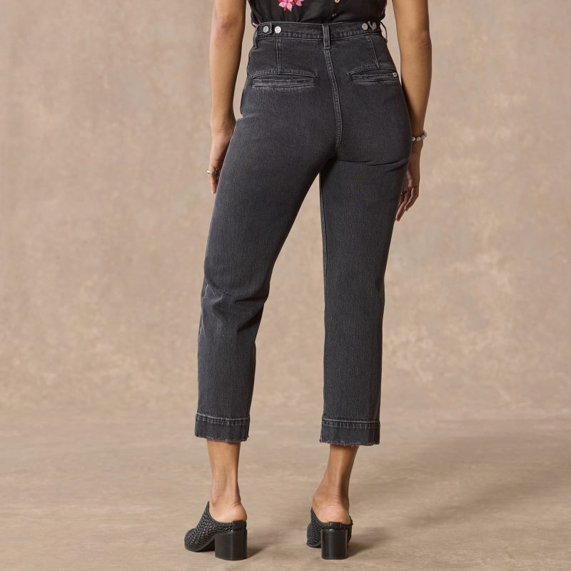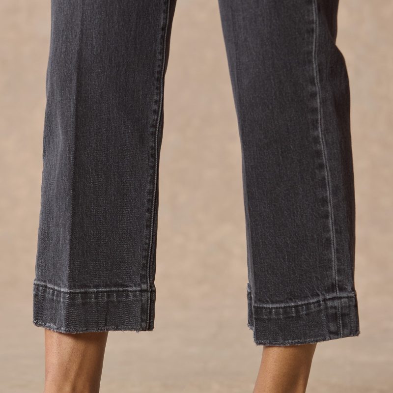 These jeans boast a flattering. hip-slimming. waist-defining. straight leg silhouette with a classic five-pocket design. Cotton/elastane. Machine wash. Imported. Sizes 24?C32. 27 inseam. 12 rise. 16 leg opening.