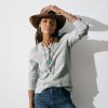You’ll feel free in our flowing and relaxed top with elegant flutter sleeves and shirring at the neckline. Keyhole at the back with button closure. Linen. Hand wash. Imported. Exclusive. Sizes XXS (00). XS (0?C2). S (4?C6). M (8?C10). L (12?C14). XL (16?C18). Approx. 23l.