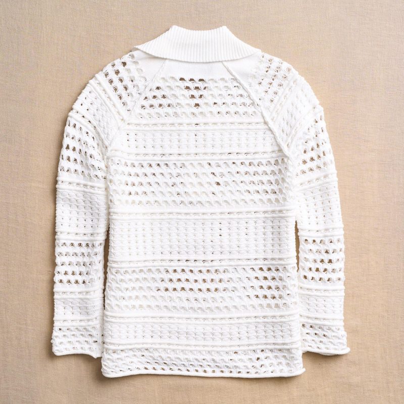 Live like every day is a beach day with our easy. pullover sweater light. airy and full of stunning pointelle and mixed rib texture. Jersey roll finish. side slits. Cotton. Hand wash. Imported. Exclusive. Sizes XXS (00). XS (0-2). S (4-6). M (8-10). L (12-14). XL (16-18). Approx. 23l.