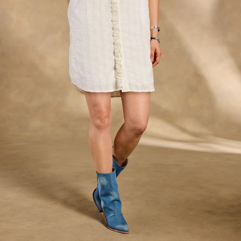 A Sundance favorite top becomes a dress. Ruffles abound in flowing. easy-fit style. with a subtle stripe in the fabric. hidden button placket and convenient pockets. Cotton. Machine wash. Imported. Sundance exclusive. Sizes XS (4). S (6). M (8–10). L (12). XL (14). XXL (16). Approx. 35l.