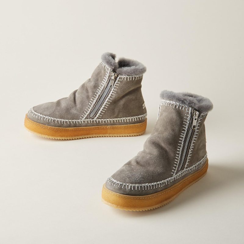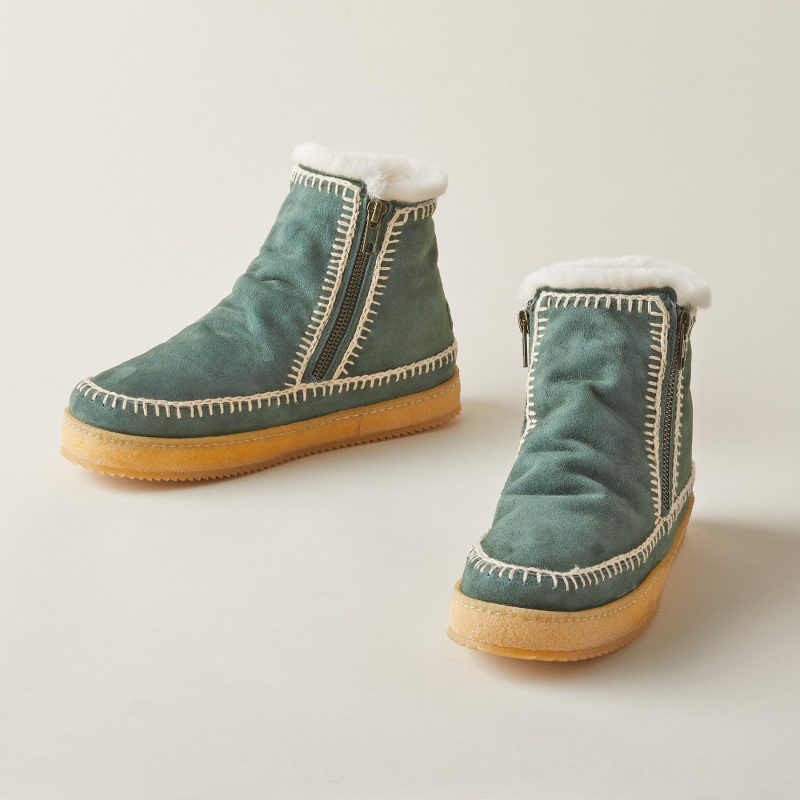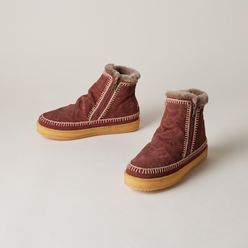 Queen of comfort and handcrafted style. these cozy. shearling boots are accented with hand-crocheted details. Imported. Euro whole sizes 36-42. 1 heel.
