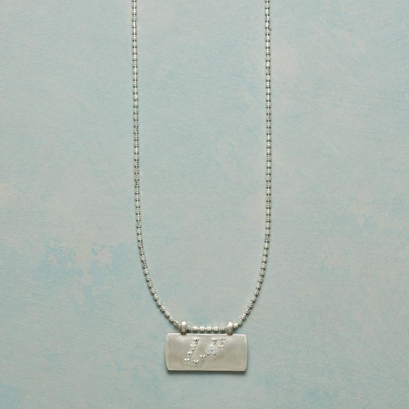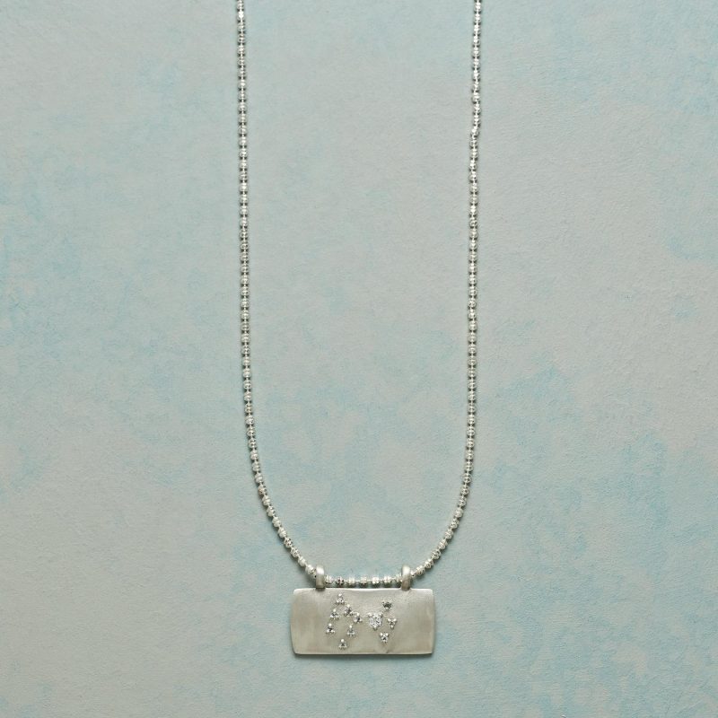 Our sleek sterling silver pendant hosts a straightforward expression of your astrological birth sign in sparking white topaz. Sterling silver ball chain and spring ring clasp. Exclusive. Approx. 18l.