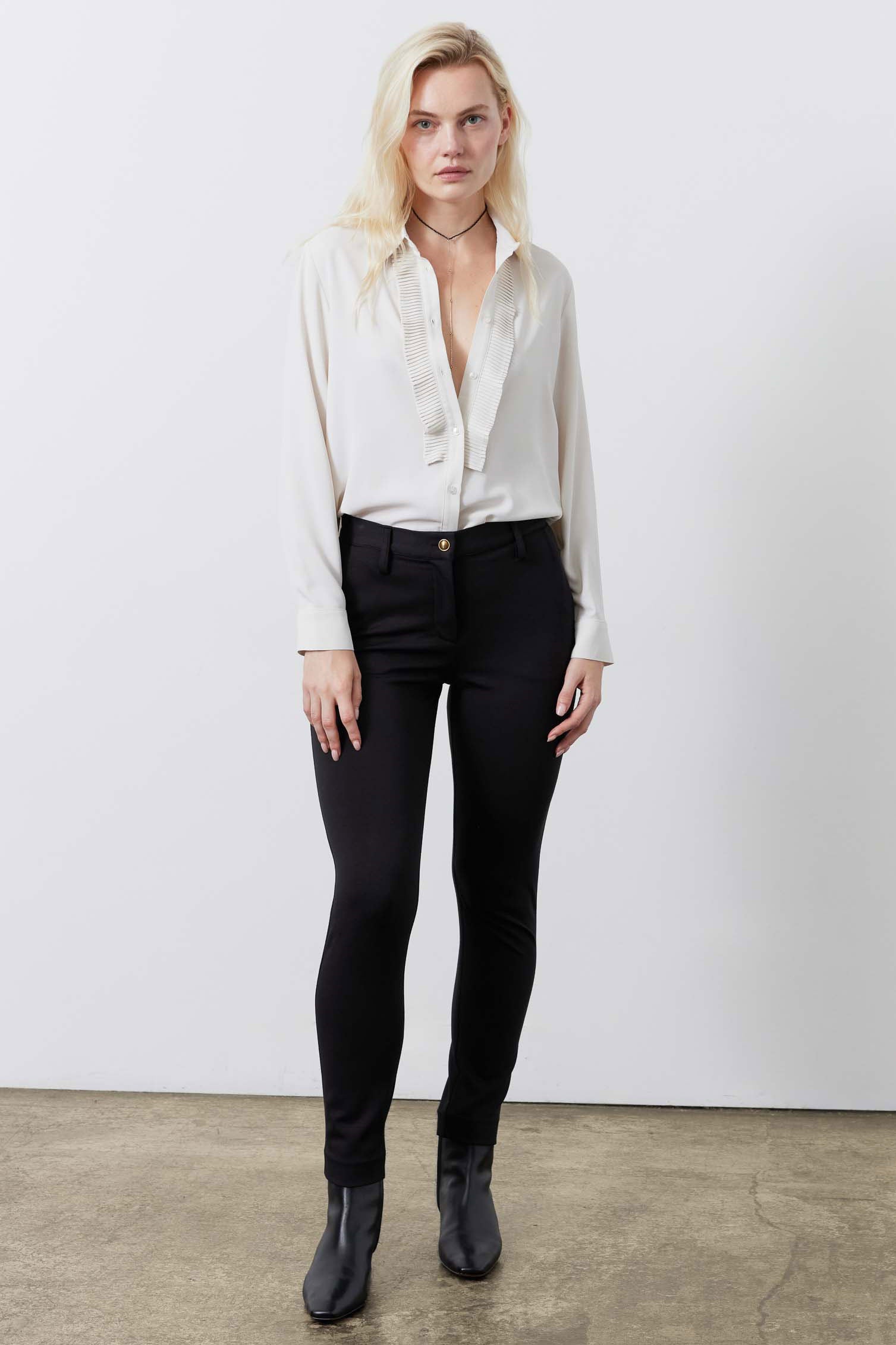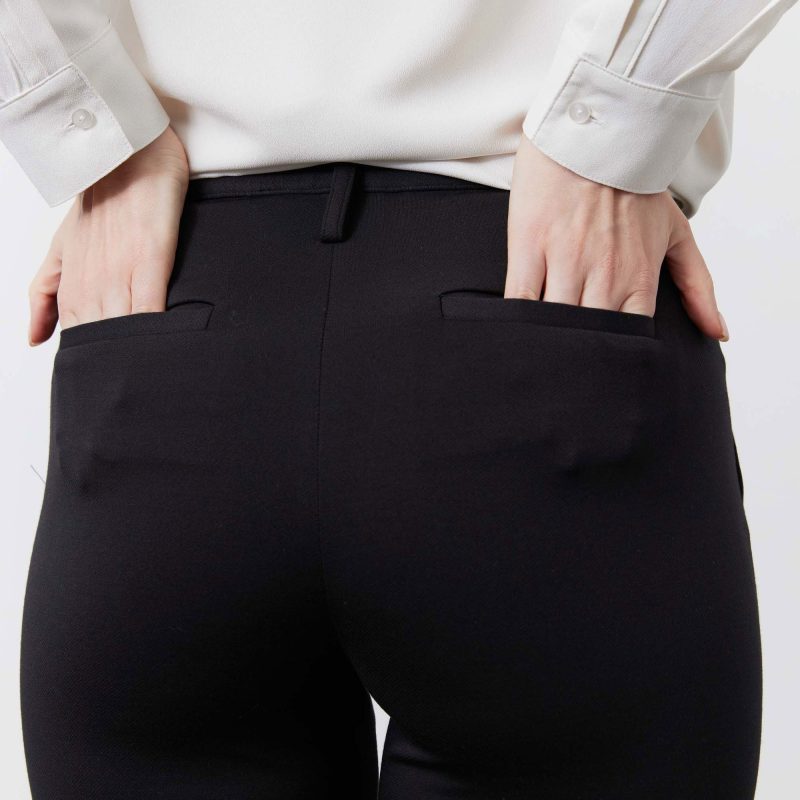 Crafted from a stretch suit fabric. this pant blends comfort with a polished. dressy appeal—perfect for work or elevated occasions. Featuring a tapered silhouette. smart seams. and refined utilitarian details. it offers a sleek. sophisticated fit that ensures elegance and confidence with every wear.