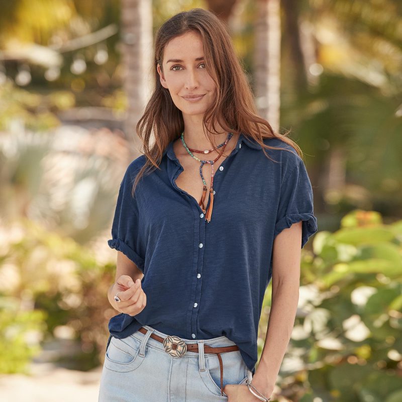 Sweet pintucks elevate our mid-length tank with raw-edge detail and buttons at the center front. Linen. Hand wash. Imported. Exclusive. Sizes XS (0–2). S (4–6). M (8–10). L (12–14). XL (16–18). XXL (20–22). Approx. 24l.